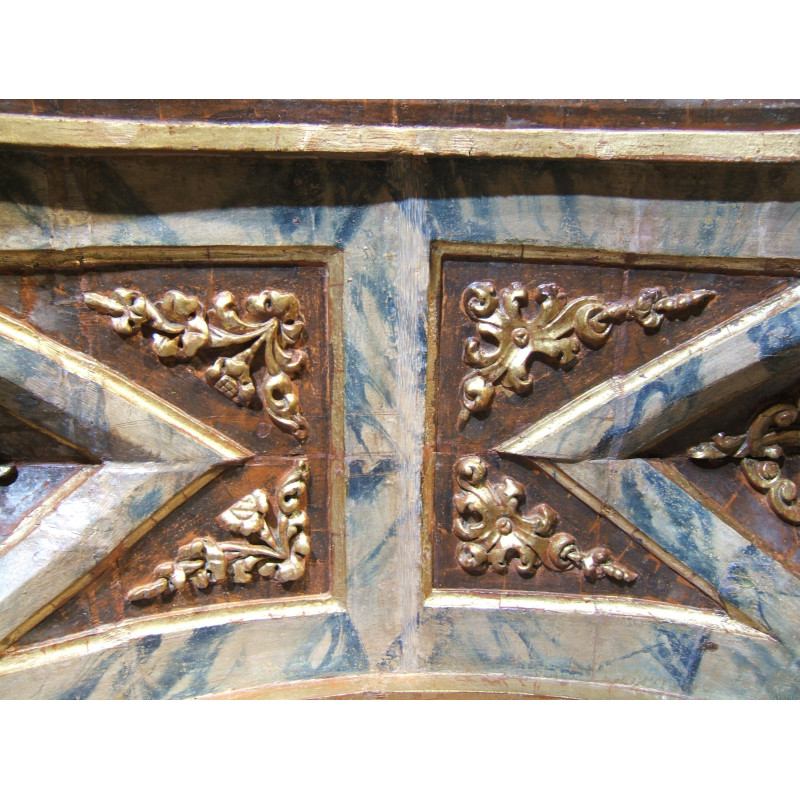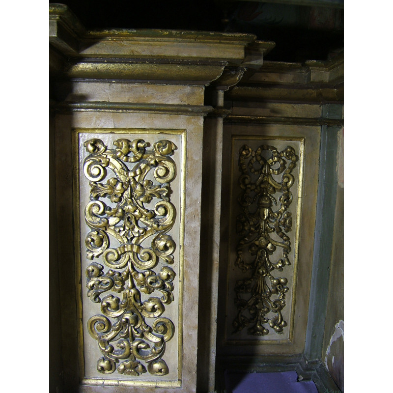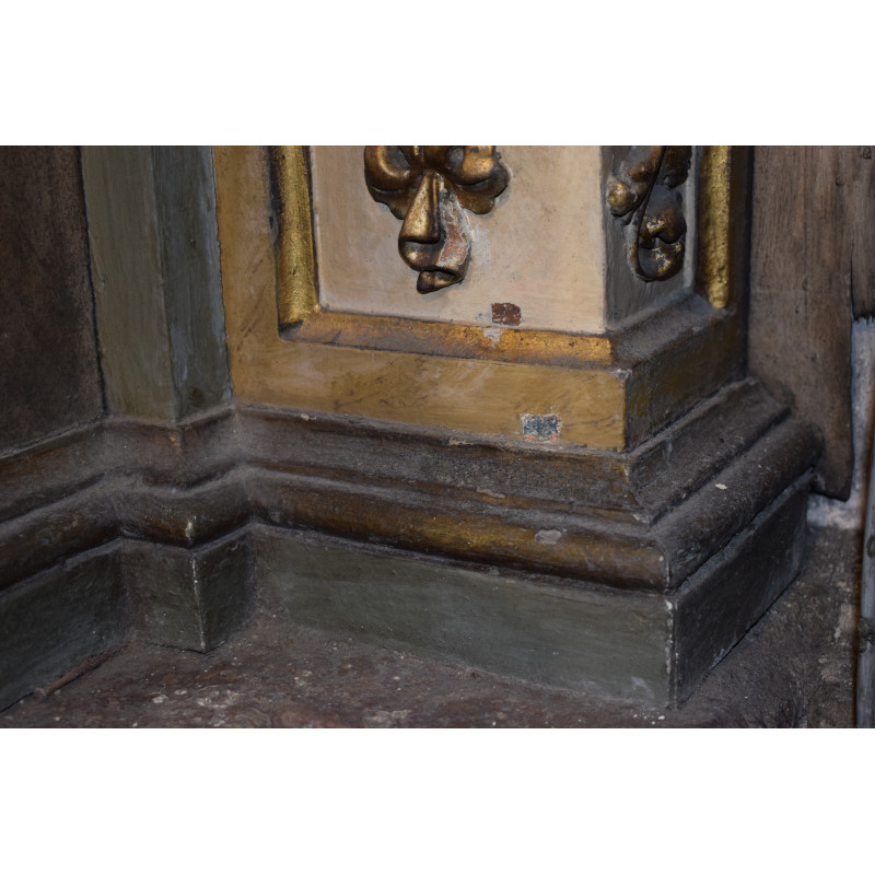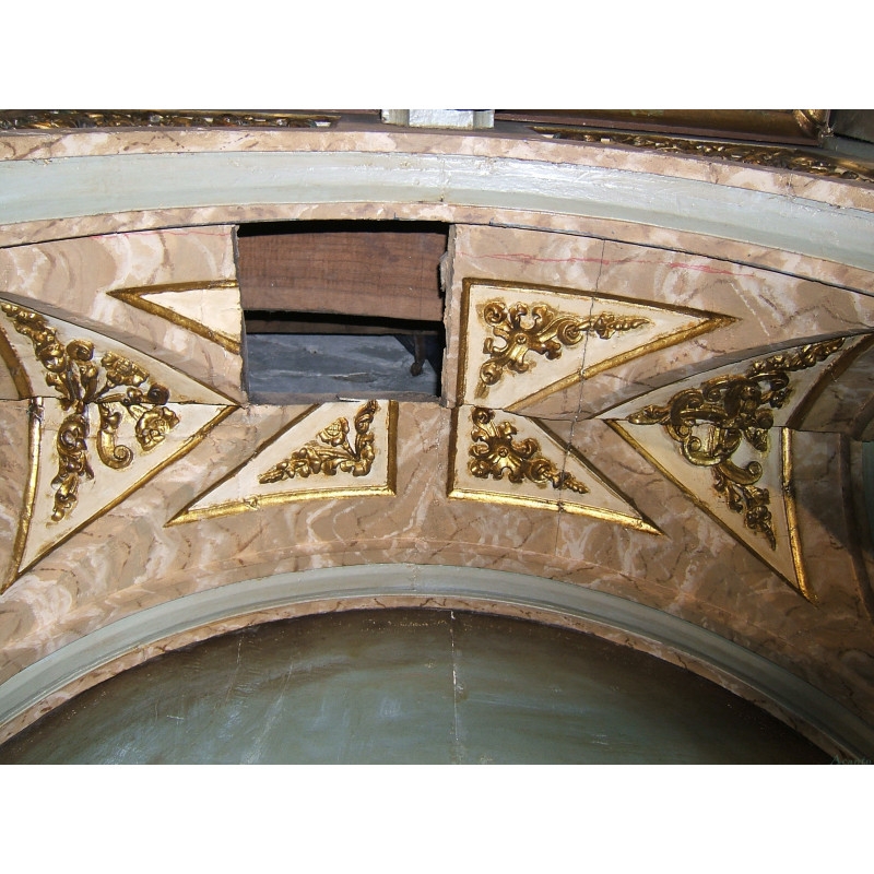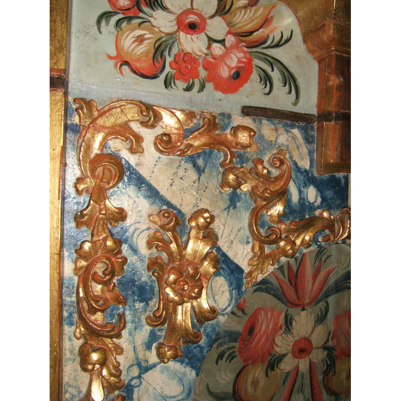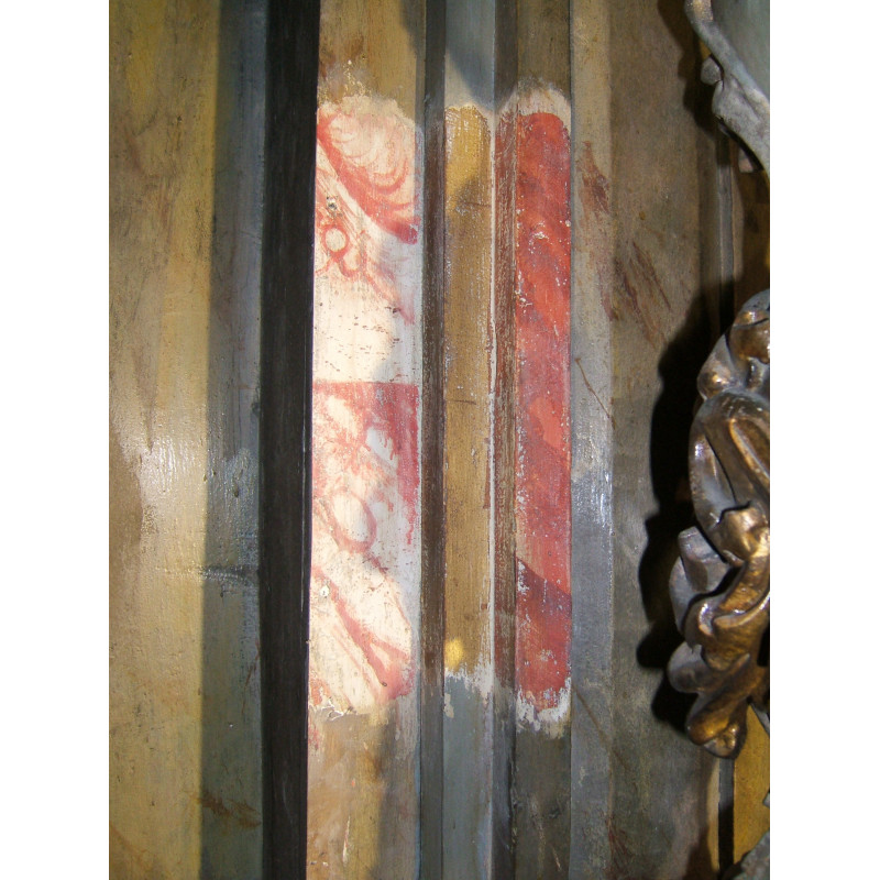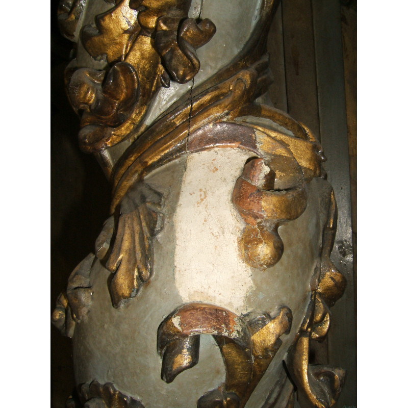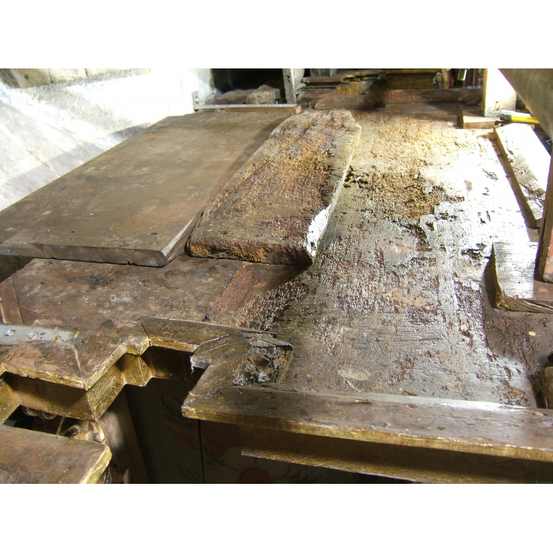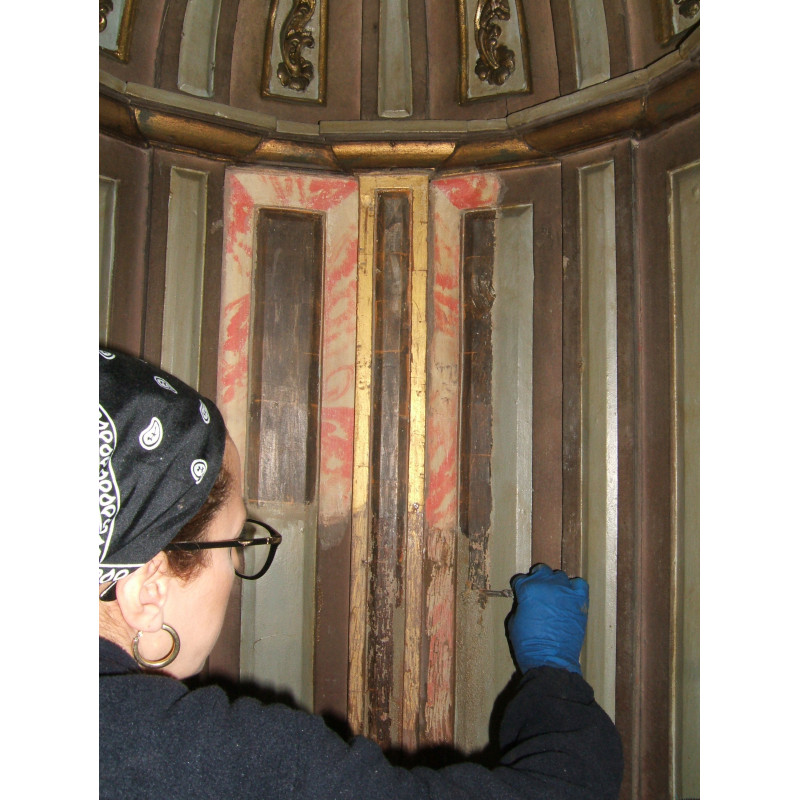 Estado de conservación era malo. Ataque puntual de insectos xilófagos (carcoma) visible en la zona superior del sagrario. Pérdida puntual de masa lígnea. Estructura se muestra estable. Anclajes no son visibles. Hundimiento e inclinación en el templete de la Virgen. Pérdidas de volumen puntuales, coincidiendo con zonas bajas. Seguramente por golpes de carácter mecánico. Separaciones entre piezas y aparición de grietas. Clavos oxidados. Al menos una intervención anterior. Repintado y redorado total de la obra, con una preparación intermedia. Repolicromado con grises, cremas, marmoleados en beige y rosas. Redorado con oro falso al mixtión. Oxidaciones puntuales. Policromía original rica y de colores vivos. Dorado original con oro fino al agua. Mesado original (seguramente de madera) sustituido por uno de piedra granito. Descomposición de los estucos. Desprendimientos de película pictórica. Levantamientos y desprendimientos de la película pictórica. Oxidación de la capa protectora. Manchas de humedad y moho. Suciedad superficial.